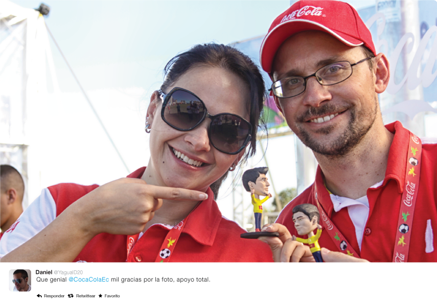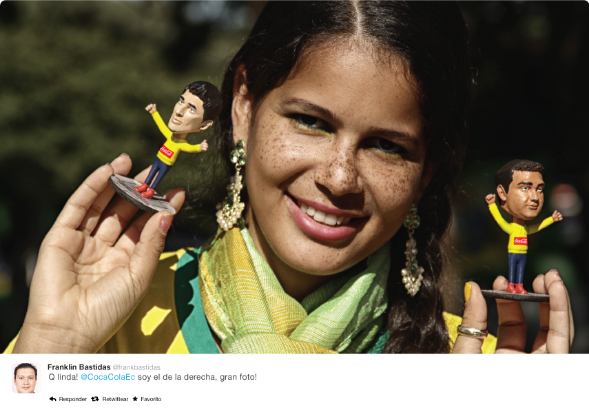Geometry Global Ecuador llevó a cabo una acción para Coca Cola Ecuador dentro de la campaña “La Copa de Todos”. #SELFAN, se desarrolló en el marco del reciente Mundial de Fútbol que tuvo lugar en Brasil. Se trata de #SELFAN, una iniciativa creada para combinar el concepto selfie con el de fans, provocando una original manera de que los hinchas ecuatorianos pudieran acompañar a sus jugadores que clasificaron para la Copa.