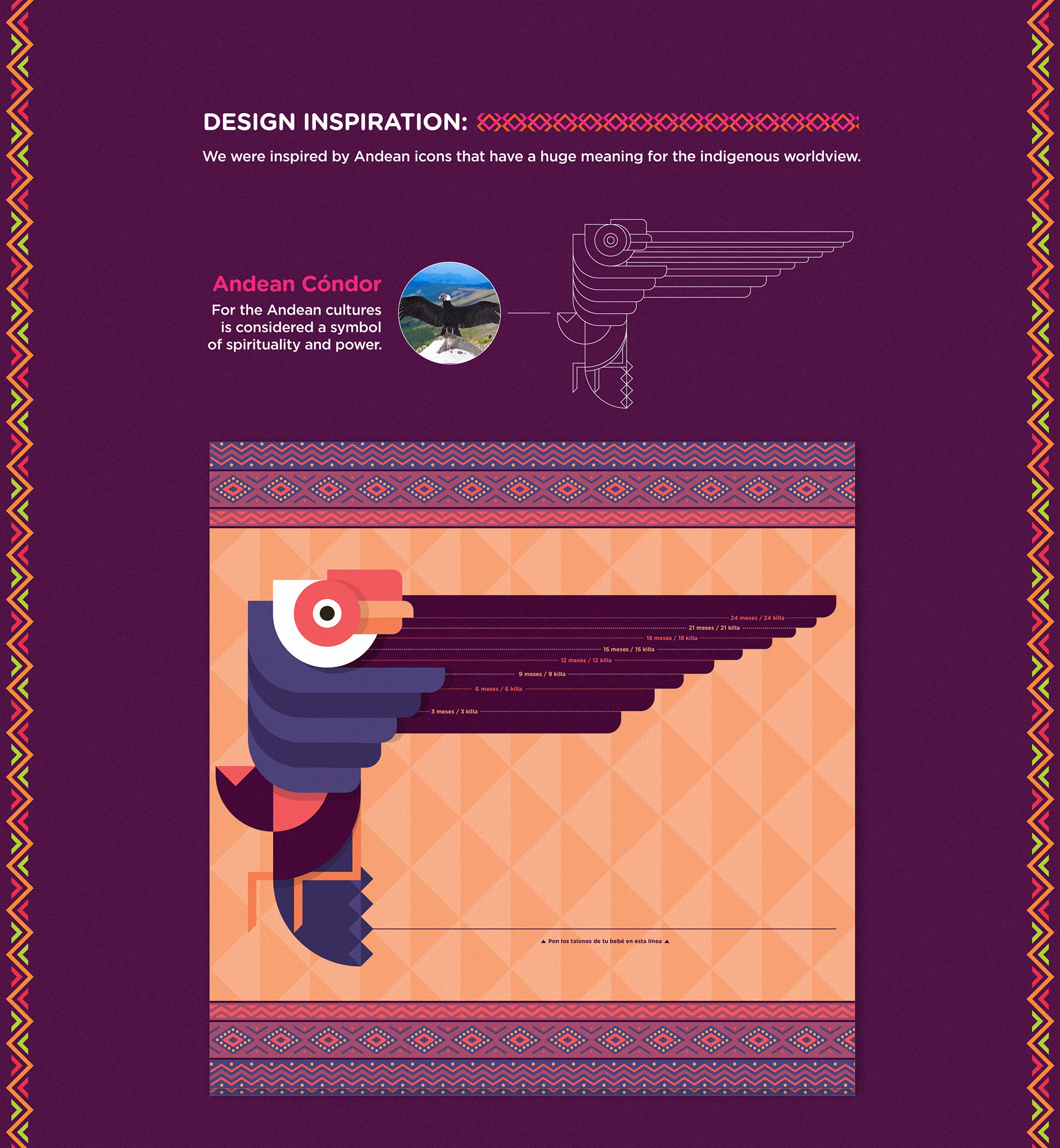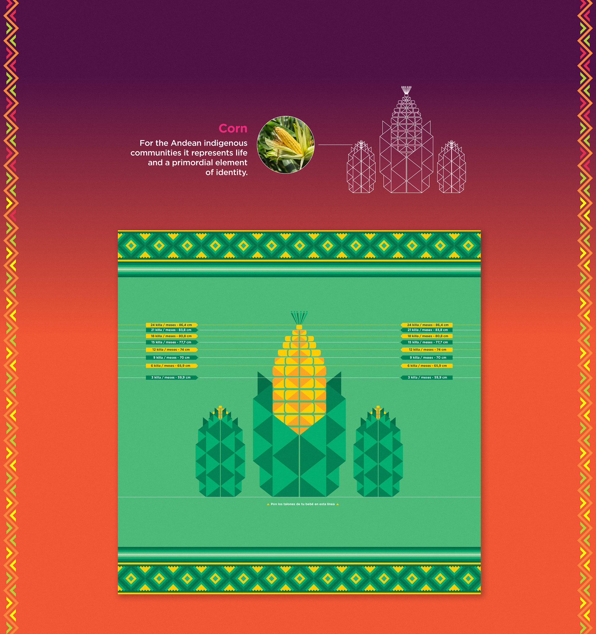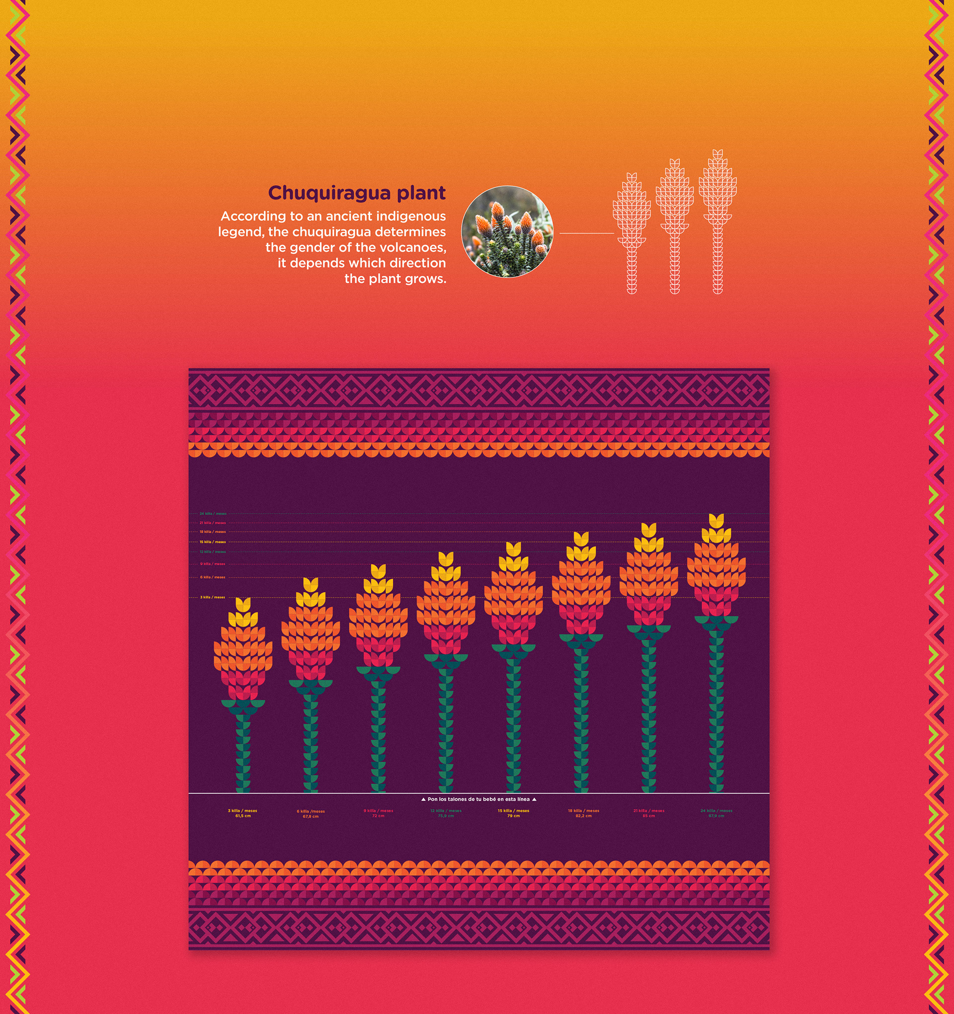 Inspired in the closest connection Andean mothers have their babies, the “Sikinchi”. We redesigned the OMS Infant Growth Chart and printed it into blankets to help Andean mothers keeping track of their babies development. The designs feel culturally authentic and the information of how big a healthy baby should be, is written in quichua and spanish to simplify facts to Andean mothers. We provided these blankets in comunes. And explain mothers of all ages how to measure their babies, in order to identify future ailments. For centuries babies were carried by their mothers during their first years. Now they will be growing healthy together.